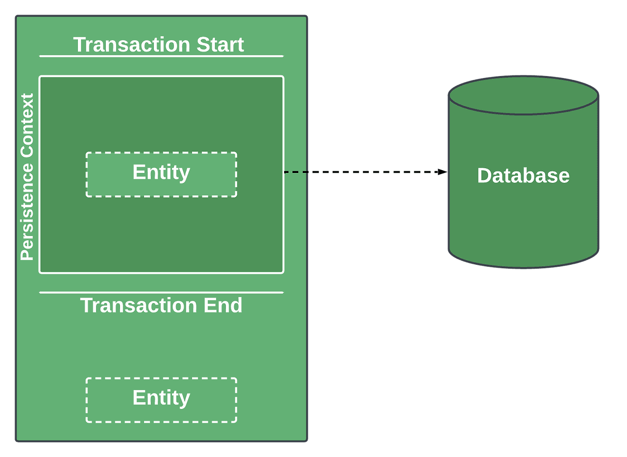 때때로, 영속성 컨텍스트를 트랜잭션 범위 밖으로 확장할 수 있지만, 이는 일반적이지 않고 특정 시나리오에만 유용합니다. 영속성 컨텍스트가 트랜잭션에 대해 어떻게 작동하는지 확인해봅시다.