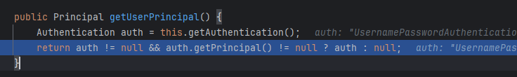 PrincipalMethodArgumentResolver의 resolveArgument 메서드에서 principal을 리턴한다. 이 때 principal을 어떻게 불러오는지 확인해보자.