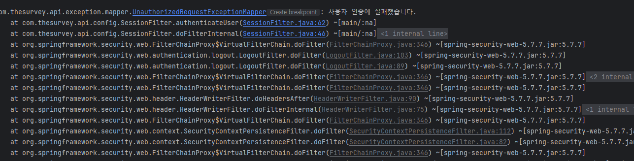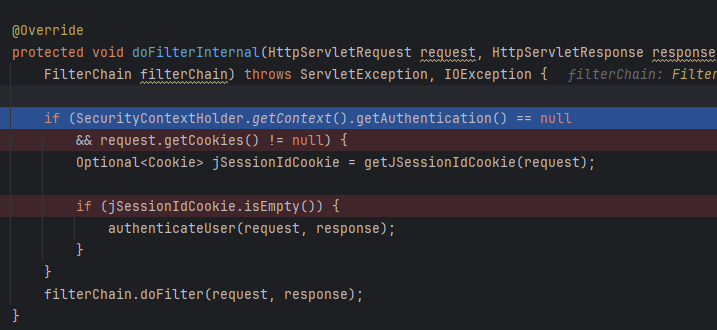 즉, 다음과 같이 동작하도록 SessionFilter가 구현되어 있었다.
