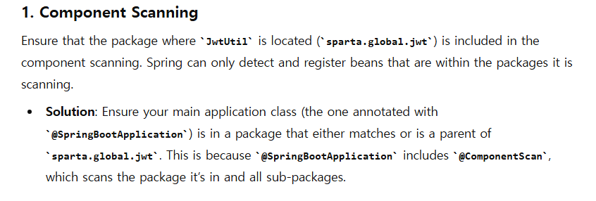 원인이 무엇인지 갈피를 못 잡아서 GPT한테 물어보니, "Component Scanning이 이루어지는 패키지 안에 있음?"이라고 한다.