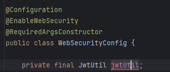 JwtUtil 클래스를 Bean에 등록했음에도, autowire을 할 수 없다는 경고가 자꾸 나온다.