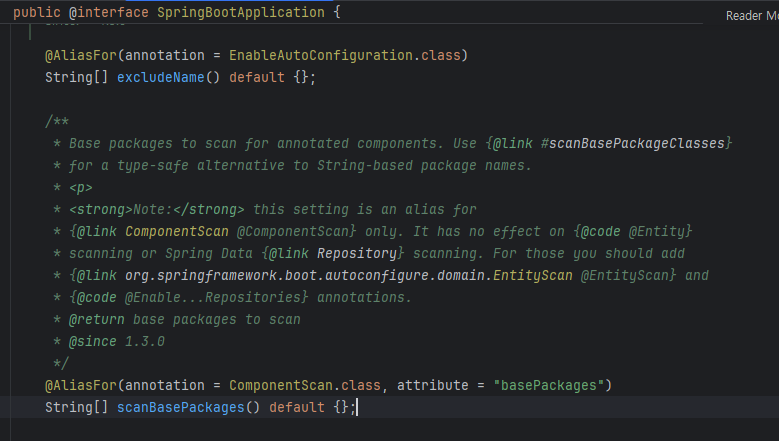 이를 바꾸기 위해서는 @ComponentScan(basePackages = {"com.example.service", "com.example.repository"})와 같이 설정하면 된다. excludeFilters 속성을 사용하면 제외하는 것도 가능하다.