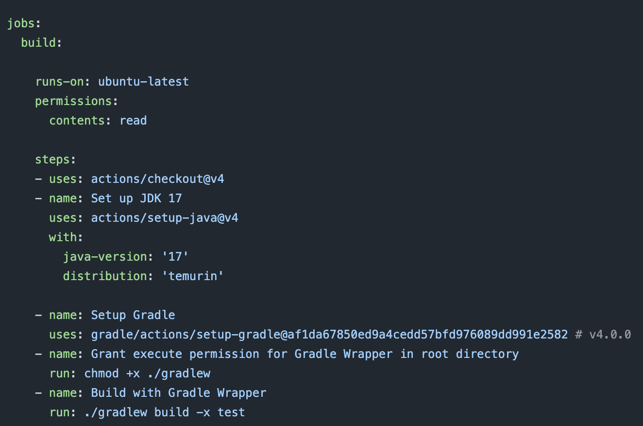 초기 CI 구성 시에는 gradle build -x test 명령어로 테스트를 건너뛰었다. 외부 Redis, DB, Kafka 등의 의존성이 테스트 중 연결되어야 하는데, 이로 인해 테스트 시 에러가 발생하기 때문이다. 그러나 이렇게 테스트를 생략하면, 서버 실행 후 발생할 수 있는 예외를 미리 확인할 수 없다.