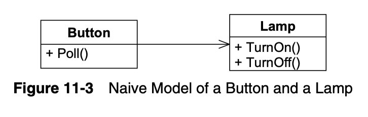 Figure 11-4의 디자인은 Button이 ButtonServer 인터페이스를 구현하는 임의의 장치를 제어할 수 있게 합니다. 이로써 많은 유연성을 얻을 수 있습니다.