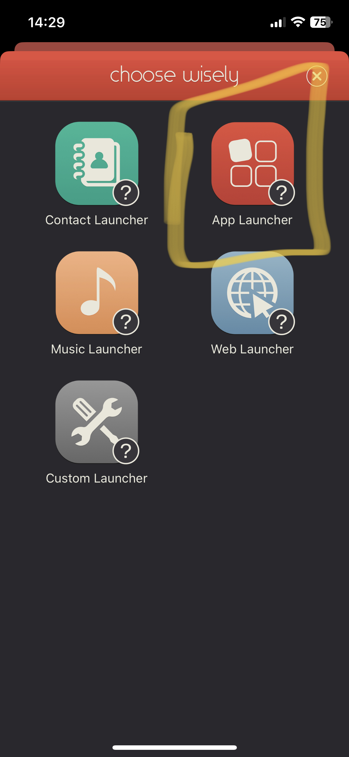 그 후 Launcher 앱을 찾아서 클릭합니다. (없는 경우, 아이폰을 껐다 켜봅니다.)