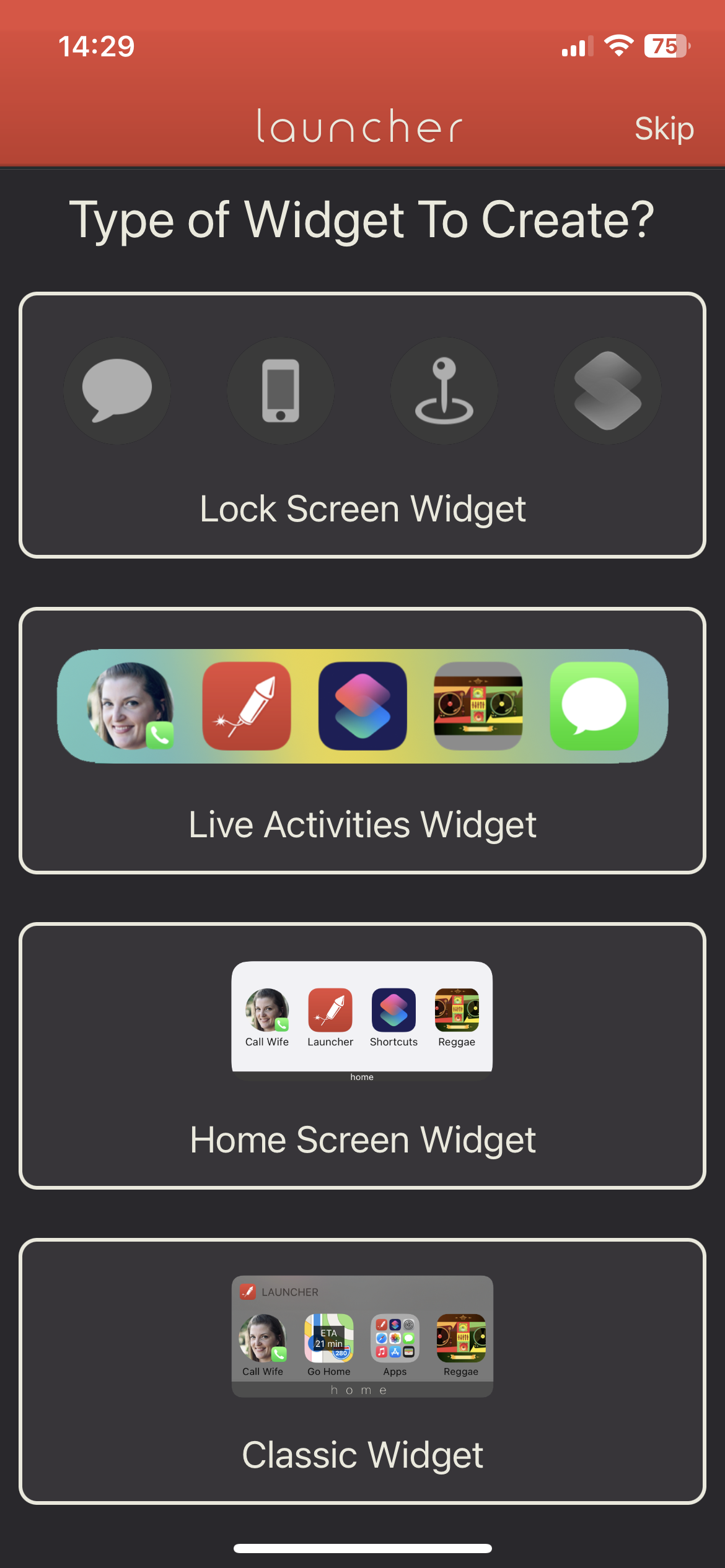 앱을 실행한 후, Lock Screen Widget을 클릭합니다.